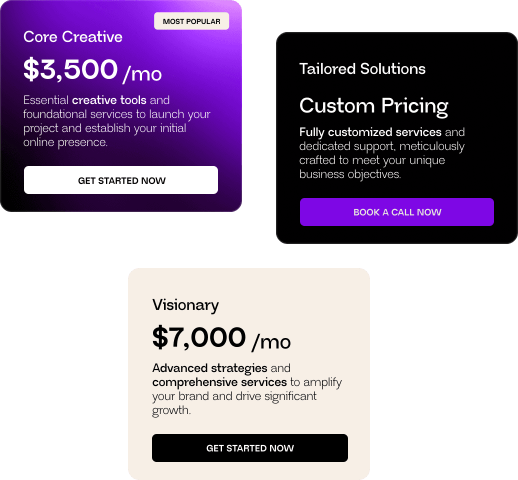Choose the plan that fits your current stage. Go with Express Fit if you need high-quality design at speed, or the Tailored Suite if you need us to handle your most complex, technical projects.