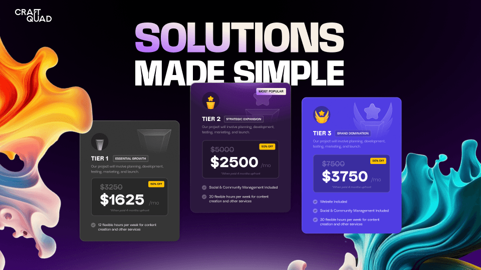 Essentials is designed for steady, consistent execution with minimal check-ins. Growth includes higher monthly output, faster turnaround, and more hands-on communication. The core process stays the same. The difference is how much work is delivered and how closely we collaborate.